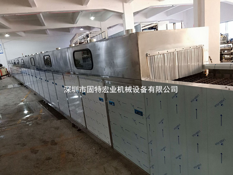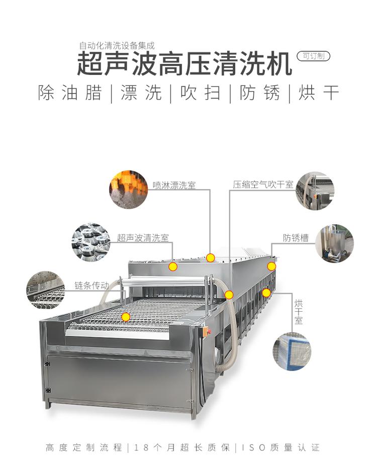 鋁合金壓鑄件噴淋清洗機是一臺履帶式超聲波清洗烘干線,采用特制網(wǎng)鏈傳動輸送工件,具有超聲波粗洗、超聲波精洗、鼓泡過水、切水、烘干、等功能的新穎連續(xù)式清洗烘干設(shè)備。由人工將工件放在特制的傳動網(wǎng)鏈上,工作時,清洗工件置于輸送帶上,依次通過清洗室、清洗室、漂洗室、切水室、烘干室完成清洗、漂洗、過水、吹水、烘干等流程后出料,超聲波槽回液經(jīng)過濾處理循環(huán)使用,該機具有工位多,功能全,結(jié)構(gòu)合理,操作方便,清洗效果好的優(yōu)點,這對于流水線零件的清洗,改善勞動環(huán)境,節(jié)省勞動力,提高清洗和吹干質(zhì)量,具有重要的意義,適用范圍:如LED燈杯、燈座、燈罩、燈殼、鋁殼、沖壓鋁件,電機外殼、散熱器、五金配件等等。